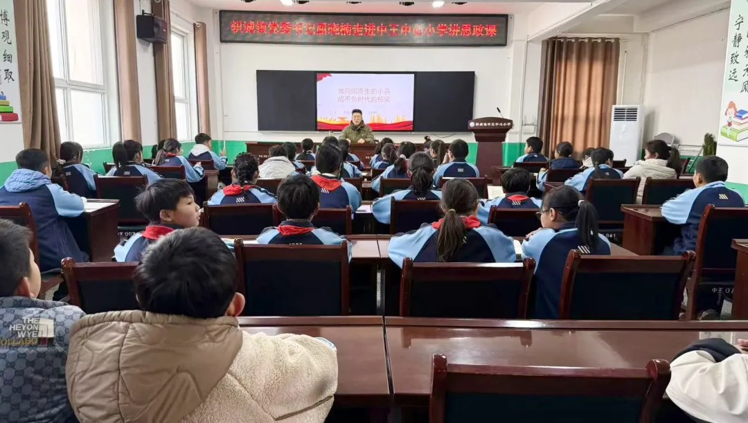 映象网讯为扎实推进领导干部进校园讲思政课活动,厚植青少年的爱党爱国情怀,培养德智体美劳全面发展的社会主义建设者和接班人,1月28日,济源市轵城镇党委书记屈晓楠以《做向阳而生的小苗 成不负时代的栋梁》为题,为辖区中王中心小学师生上了一堂精彩生动的思政课。